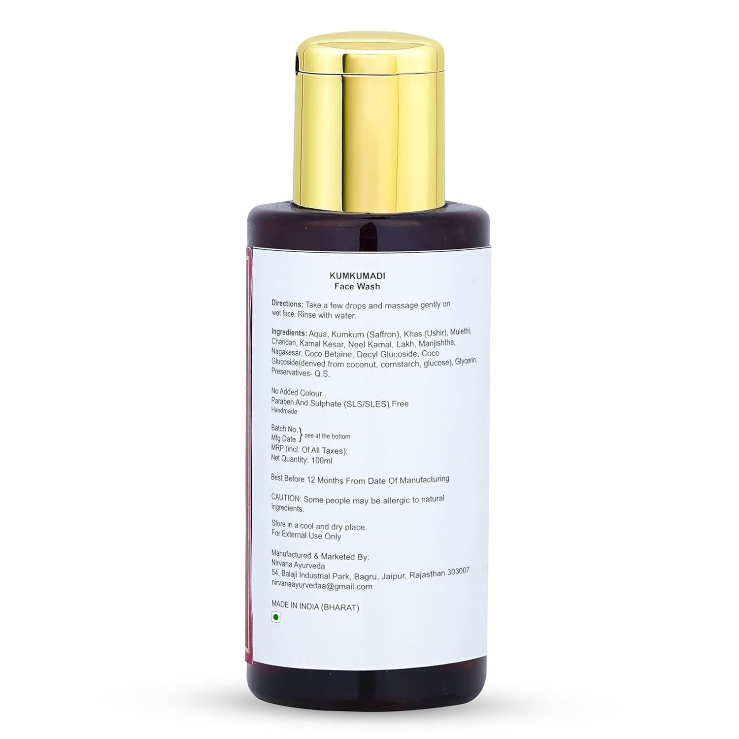 100ml Kumkumadi Face Wash from Nirvana Ayurveda. Brightens, cleanses, nourishes, and reduces fine lines for radiant, youthful skin.