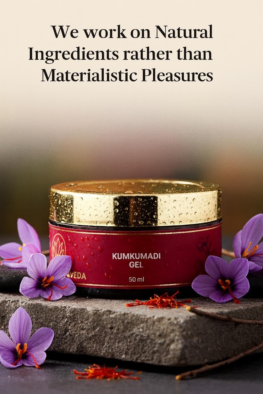50ml Kumkumadi Gel from Nirvana Ayurveda. Brightens, hydrates, reduces dark spots, and revitalizes skin for a youthful, glowing complexion.