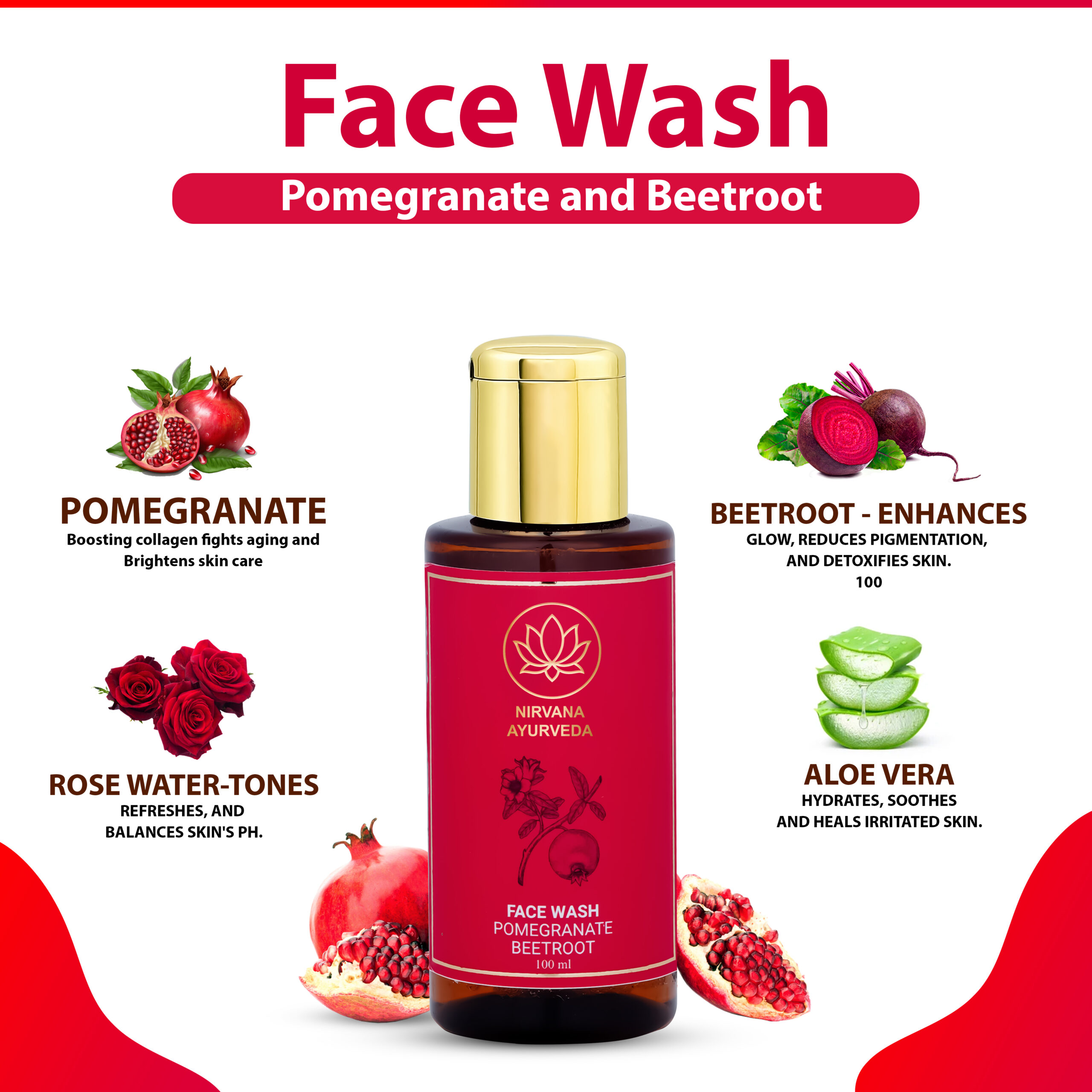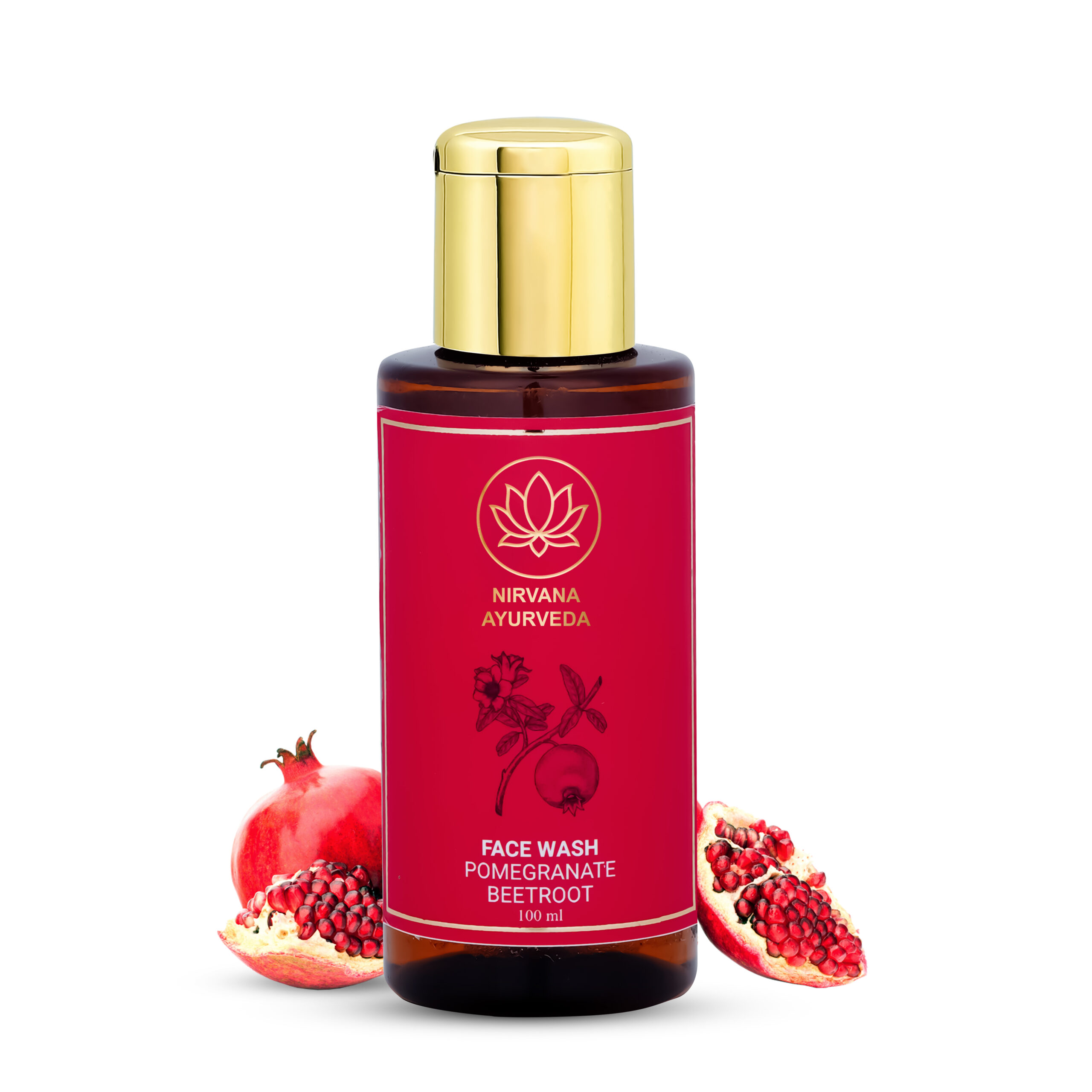 100ml Pomegranate Beetroot Face Wash from Nirvana Ayurveda. Brightens, detoxifies, and deeply cleanses skin while enhancing elasticity and hydration.