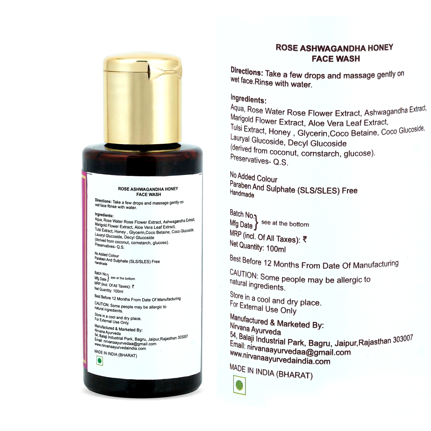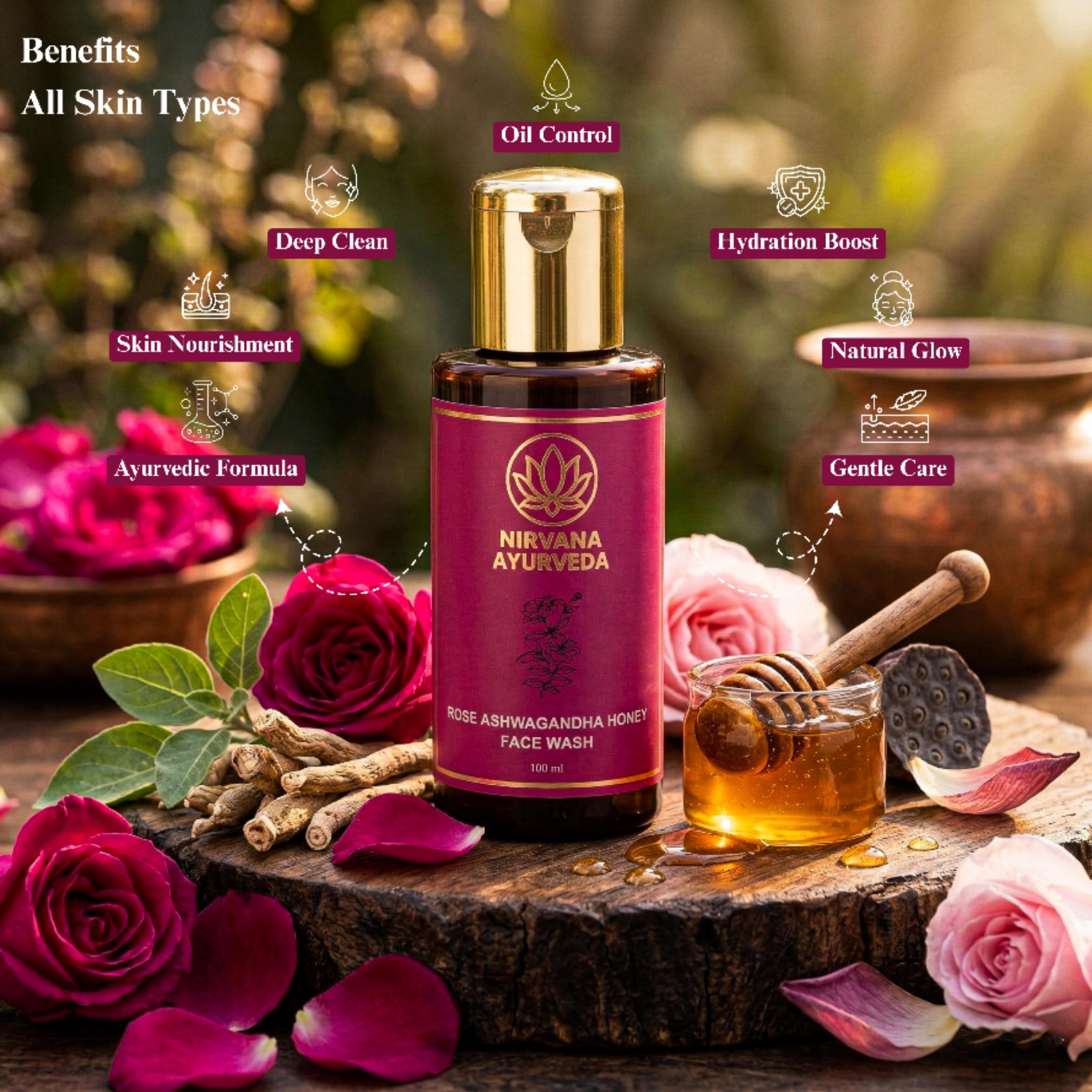 Nirvana Ayurveda Rose Ashwagandha Honey Face Wash (100 ml)